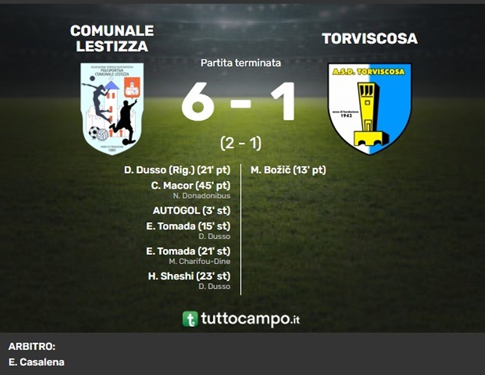 Tabellino Comunale Lestizza - Torviscosa 6 - 1
